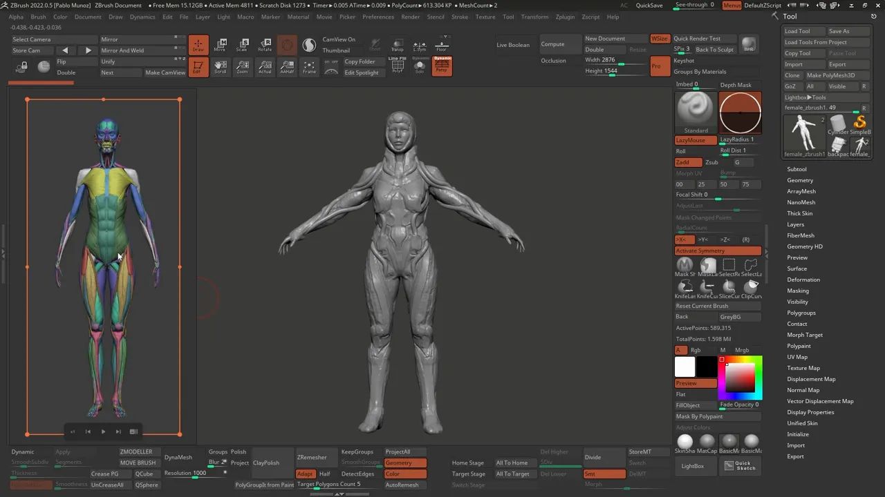 You can also color-code your groups using the color picker. I like assigning hues by category for example, yellow for mechanical parts, white for anatomy, or green for environment references.
