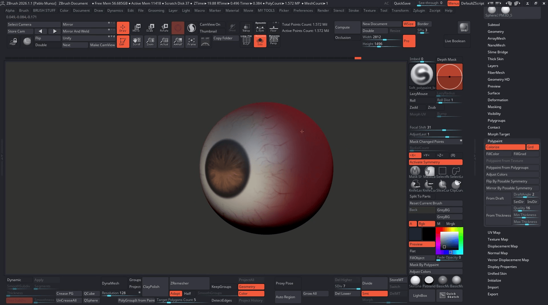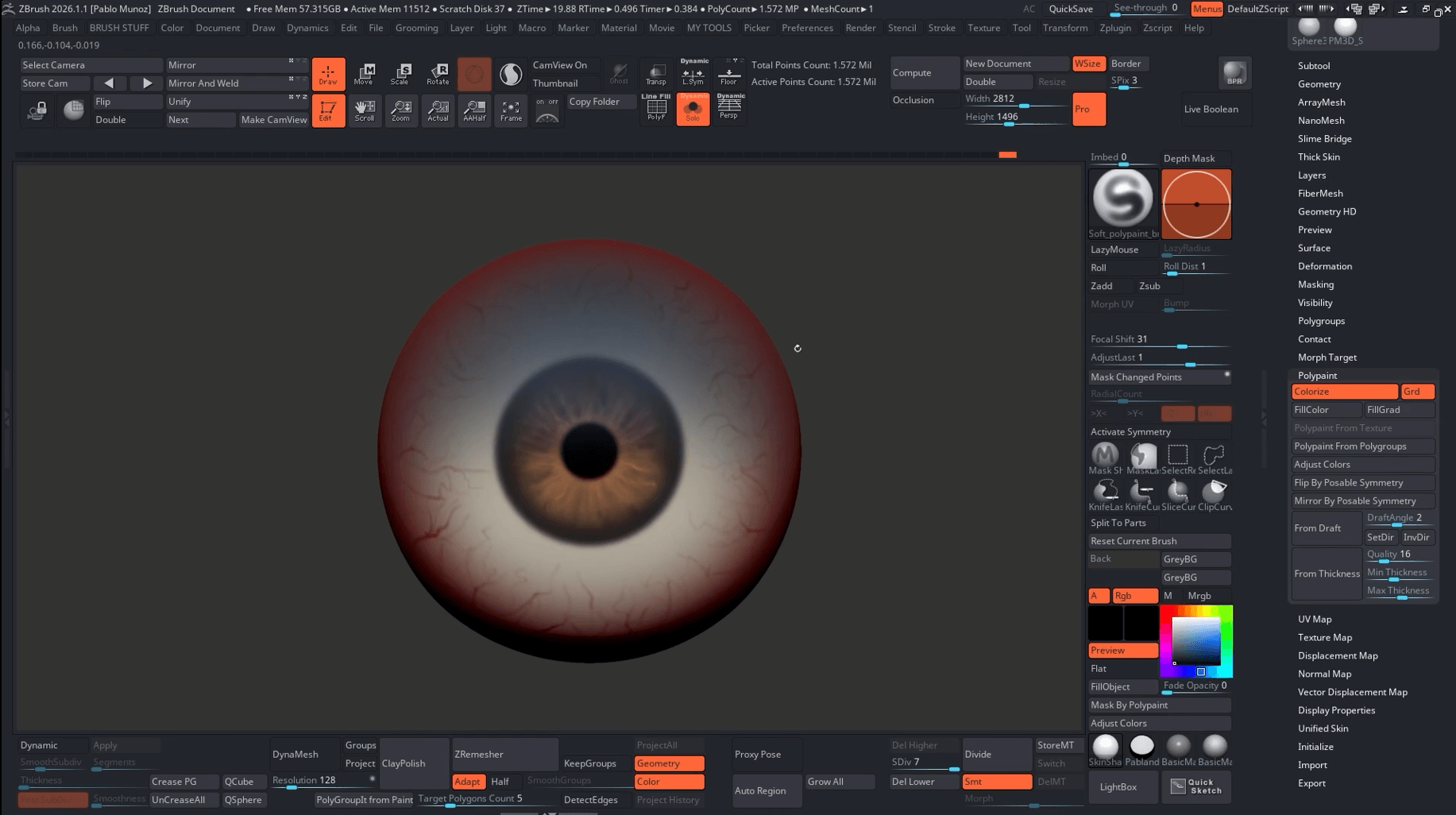 Creating a realistic iris for an eye in ZBrush using FiberMesh